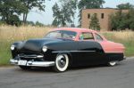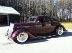 I am running a 296 flathead and a 4 speed toploader with 16's at the corners with dropped axle and a nine inch. Disc's up front drums out back and a caravan seat. Chopped and hi-boy with 50 Pontiac taillights. B LC's for front headlights, 56 Mercury stainless strip down the centre of the hood and twin 94's. Kustom Spider caps and trim rings and a deuce shell and handmade headers with Smitty's. Buggy spring at the rear and at the front with a vega box. Walker rad and a banjo steering wheel..TBJ