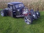 No build pics really. I bought this one. Its a 35 Ford pick up cab, chopped and channeled with a skeleton fabricated tail end, 383 stroker, 350 auto, 12 bolt (open, posi and gears in the works), air baged 4 link, mustang II front end, (posi and gears in the works). Needs interior completed and a few small changes I want to make, but I really dug the car from the get go. I am considering doing the interior my self for the first time due to "financial restrictions." I'll try anything twice. lol