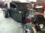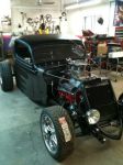 No build pics really. I bought this one. Its a 35 Ford pick up cab, chopped and channeled with a skeleton fabricated tail end, 383 stroker, 350 auto, 12 bolt (open, posi and gears in the works), air baged 4 link, mustang II front end, (posi and gears in the works). Needs interior completed and a few small changes I want to make, but I really dug the car from the get go. I am considering doing the interior my self for the first time due to "financial restrictions." I'll try anything twice. lol