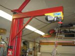 A few pics of my little crane attached to the hoist post. I used two 1/2" thick plates with tapped holes to weld to the post. Its the only way to attach something.
