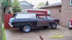 i've posted about her on steves nova site and canadian poncho but she is a hot rod, so heres the story. there wasn't enough to restore because of good old ontario salt so i didn't feel to bad about hacking her up. right now i've got rid of the back doors and used doors off a 65 2 dr post. they are 11" longer and filled in the back windows. Front clip is a one piece for a nova. i had purchased floors for my 70 pontiac and they were the wrong ones and wouldn't take them back. they were for a 70 chevelle. the floors were 1 in wider then the acadian so i took 1/2 in out of each side and now they fit. for seats i'm going with the 6 way electrics buckets out of the 99 grand cherokee that was totalled i'm also using the sun roof. i've also scavenged a roof rack off a 70 chevelle wagon. the subframe or floor was next to non existent. For frame and suspension 2x4 squared tubing using s10 leafs and suspension in the rear, front is a I-beam. Drive train is a 427 steel crank w/ a tunnel ram dumping into a super t-10 with a 67 9” posi out back narrowed to 38” backing plate to backing plate. right now she is in storage till the 70 is out of the toy room