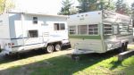 Not sure that I have any pictures, but I have been towing these things around for a few years now as well. My first was (is) an '84 Terry Taurus, I scored it from a trailer park that wanted it moved off it's property. The interior was trashed by it's previous owners and all the plumbing fixtures had been removed. I replaced everything, put in some new flooring, new tires and made some repairs to the brakes etc...then dragged it around Ontario for about 3 years. It served us well and is now retired to the back of my property where it can be used as a bunk house or camp out (I'm on 86 acres). That trailer was good, but was still missing some things that I didn't want to invest into that old of a trailer (like a stove, proper RV fridge, upholstery LOL) so my wife and I began looking for a replacement. We planned to do some longer distance traveling so I wanted something lighter and a little shorter (I had two kids at the time, 3 now, but they are 8 and under). I found a 1998 21' Flagstaff for a deal I couldn't turn down, and drove to Kingston to look at it, When I got there I liked everything but two things...the tires were shot and it had "Surge" type breaks. I made a deal pointing out the tires were garbage and drove it directly to a tire shop and put 4 new tires on it before I headed home. I then converted it over to electric brakes and we have been enjoying it ever since. It's been to Halifax/PEI on one trip, Quebec city on another (where I drove around inside Old Quebec city during the Summer Festival towing it with my 2005 1500HD Crew cab...it was tight LOL), and numerous trips around Ontario...just got back from Awenda Provincial Park near Penatang this past week.