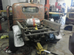 oh its going to be done and on the road by may, june at the latest. got the frame all welded up on saturday, put engine and cab back on today. now the push is on looks like its time to use some of my holidays to get some rat truck time in. and in honour of the seven cylinder guru(flatblack55) i have painted the frame flat black. finding an ample supply of flat black bombs is not easy in this area after mr white stocks up.