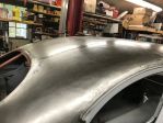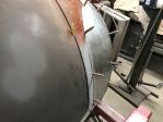 Lots of pock marks from every hammer hit. By this time, it was well past the weekend and I could have brought the wheel home, but I was enjoying the hand tapping. I was learning a lot about where to stretch the metal, so this knowledge would help later using the ewheel.