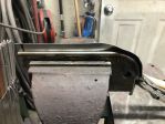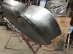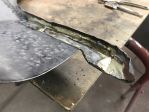Since it was a Friday night and the ewheel was at work, I thought I'd try to hand form patches with a hammer and dolly. Dolly was a big chunk of steel for tap a tapping on.