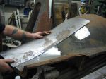 Also last Sunday I went out to pugsy's home.We spent the whole day in the garage making panels for the whell well's in the 33 coupe front fender's.Pug's made a great patch for one of my rocker's well