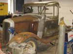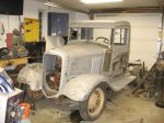 well i been working on the truck while I awaite parts for the car.I have now got the motor installed and the sheet metal cleaned up.I am going to start replacing all the wood tis week if I can find some time
