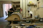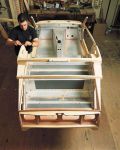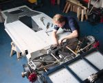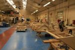 People wait for over a year to get their exclusive hand-built cars with the shell made out of metal and much of the vehicle made out of wood. Working on the wood interior, workers use metal shears to individually shape a hood because each car has to be different.