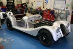 Looks like they 'dropped" the Wood frame that the older Morgan's had from what i can see here??? Upside down chassis is def. METAL!!!! Did a lot of wiring on wife's MG midget a few yr.s ago Sold it 8 yrs. ago but I'm still BALD from the Lucas wiring problems!!!
