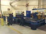 Heres the laser machine at work ,,, its a work horse , 24 hr a day 5 - 6 days a week ,......as cut parts come out , there a nother table feeding a blank sheet of steel in within 3 to 4 mins its cutting again....you to can own your own laser machine for a mear 750 000 bucks ,, this machine paid for itself in a year and half ,, hour of maint a week ,, awesome machine.. forgot to mention....we have 2 lasers...bought same time ...