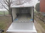 My 24' Wells Cargo Auto Hauler. Best thing about this bad boy is that it is not full height (5' backdoor) and has a bubble front wind break. It tows with my Chev 1500 (305ci) like a dream. I tried to tow a regular sized 24' trailer with a flat front once and my truck almost died. My 69 fits in nicely with room front and back however you have to bend your head just a bit when inside. The double drivers side door opening is also a huge benefit when getting in and out of the car. I have loaded the Harley in a few times and used it for camping/riding weekends as well. Throw a single mattress in the back and a few coolers of beer and good to go.