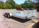 Heres mine. I built it out of an old house trailer frame that was given to me, has 3500# axles, electric brakes and is now quite solid with some beefing up I did...Built mainly as a landscape trailer but I did have my daughters minivan on it when it broke down..Works good