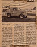 The following article was written by Dave Mathers from St. Thomas and appeared in "Wheelspin News" which was THE paper for all the drag racing news during the 60's. I was long gone from the car but remained friends and very interested in the success of "our" old car. Wes Rydell was a great addition to the partnership. It did make some history.