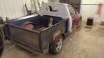 Looking cool..can't wait to see some paint or flat blat or ..Some cheap trailer fenders from princess auto and a little massaging might make them work for the box..I like it ..