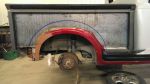 What about getting a pair of front fenders from the wreckers, filling in the headlight hole in the fender and trimming tit to work as a rear fender? Might make your fab work much easier, and would really make the box flow with the front of the truck.