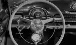 Oldsmobile had offered a Swiss made MAAR unit that mounted below center on a specially designed steering wheel and a special horn ring. This was available from 1951-52 and operated much the same way as the early Benrus, with one major difference the winding mechanism on the Maar unit worked with forward and back movements also (acceleration and braking) along with rotation of the steering wheel. The winding mechanisms also had small plastic windows were the operation of the unit could be viewed. This caused the clock to be fairly deep and a special turn signal arm was needed to clear the back of the unit when steering. Part of the steering wheel package was a dash mounted compass that went intothe hole were the dash clock was. I have more information available on the Oldsmobile Maar overflow page
