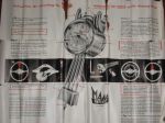 When it comes to the unusual accessories offered on Chrysler product cars in the 1950s the steering wheel watch has to rate very high on the oddity scale! Not only was it quite costly, $49.95 compared to approx.$12-15 for a dash mount clock. But it was also impractical! One reason is since the unit was not driven by electric power the face was not illuminated at night. Sure the hands and primary numbers were treated with that early glow in the dark stuff but it did not work that well. Another reason is that when you were taking a corner telling the time could be a challenge. One of the pitches they used to sell the clock is that its Swiss movement was much more accurate than that of the dash clock. And the central mounting locationmade it more visible. I would have to say that this is true. But is it really worth more than twice the price of the dash clock? The next question you might ask is how did the thing work since it was not electrical? If you remember the early wris****ches that were self-winding this is the same technology that was used on the steering wheel watches. As you drove the car the turning action of the wheel via a counterweighted pendulum connected through a gear mechanism would wind the main spring of the 8-day Gaza movement. On the early version the face could also be rotated to wind the main spring. There are two basic versions of steering wheel clock that were offered by Chrysler corp. (MoPar) the first was introduced on Feb. 3 1954 was the Moparmatic and would fit the 53 models also. These could be factory or dealer installed and were very easy to install simply grasp the horn ring center and turn counter clockwise 1/4 turn and remove the original horn ring center and install the watch with the opposite action. There were 5 different names applied to the first version Moparmatic, Chryslermatic, Desotomatic, Dodgematic and Plymouthmatic. I would have to say that the one for the Dodge is the rarest version since Dodge changed its horn ring design in 1955 and eliminated the round removable center medallion this option was only available in 1953-54 for the dodge line. This makes the Dodgematic the rarest of all of the steering wheel clocks, I have never seen one. Next would be the Plymouthmatic since $50.00 was a pretty steep price for a Plymouth buyer to pay relative to the cost of the car. The Chrysler and Desoto versions probably are about the same with the Moparmatic being the most common. Of course "common" is not a relative term when it comes to these as they do not show up very often. The first style offered by Benrus was a 15-jewel DK14 movement and the crystal could be turned to wind the watch and there was also a red pointer on the face of the crystal that could be used to monitor elapsed driving time. A small button at the eleven o'clock position was used to set the time. By depressing this button and rotating the face the time could be set. The First Available was the Moparmatic #1571-366 for use in any Chrysler Corporation passenger car. Then came the Chryslermatic #1689-112, Desotomatic # 1689-057, and Plymouthmatic part # XXX-XXXX there is also a slight variation between the early and late first series Chryslermatic clocks the early editions name was in an arch not straight like the later version. Because of the different sizes of holes in the center of the horn rings there were adapters available to make them fit. The 2 3/4" was the standard size and the 3" holes required retainer #1546-864 if you go to the first generation mountings page I will try to show the differences. This first generation clocks with the 15 jewel DK-14 movements were used until 1956 when the next generation 7 jewel FA-14 movement was introduced for the 1957 model year series.