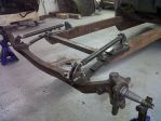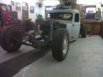 Built myself a 2x4 frame. Z`d up front, C notched in the back. Body is chanelled 4 inches. I put together a quarter eliptical front suspension setup (this is the true meaning of suicide front end). 4 Link with air bags in the rear. Vega steering box, 355 chevy with powerpack heads and a Ridgerunner Intake. I welded up the spider web grille. (not sure if I like it or not yet). Found the cool old headlights on E-Bay.. Still need to wire it and build the exhaust.. Like I said I dont want to bore anyone so In a nutshell thats it......