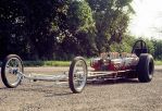 Two meshed mills for the front axle, two for the rear; this sucker flirted with 200 mph quarters, but unfortunately proved to be unsuccessful. Driver safety became an issue - when Ivo wasn't being blinded from front tire smoke, he was getting a blowtorch facial from those center row exhaust ports. It was eventually relegated to exhibition duty, and clad with some '66 Buick Riviera sheetmetal raced as "The Showboat".