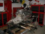 A bonus with the Lincoln was the air ride on the IFS and IRS, unlimited ride heights with minor modification to the computer system. While the IFS was on the frame machine I removed the engine and transmission (another bonus with the Lincoln, one of Fords4R70W AODE transmissions and the all Aluminum modular 32 valve 4.6L engine) to get access to the K member. A good place to start with the 5" wheelbase increase was making the opposite move back with the engine and transmission. Finally some fabricating.............................