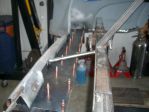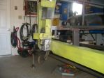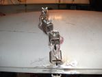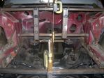 I used Tig wire to layout the steering linkages. I made a few attempts to get the least critical angles with the geometry and required clearances. I had the chassis welded to a fixture on wheels that I could bolt back to the frame machine. I had to place the chassis, motor/tranny with exhaust manifolds and the dash with the steering column on the frame machine a number of times to check geometry and clearance. I had to purchase a double "D" U-joint, "D" shafting and a "D" to the correct spline of the steering rack U-joint to fabricate the linkage. I also added a support bearing to the linkage to keep everything firmly in place. Next the sectioning of the front frame horns for the 118" wheelbase.