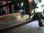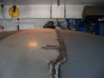 I cut a rather wide section in the center for the grafting as seen in this picture. This was to keep the correct contour of the roof with the new metal.