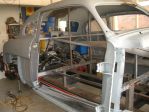 Here are my accomplishments today. I had to pie cut the floor at the tunnel to achieve the correct dash height. I manged to butt weld in the missing metal on the passenger side. That's all for now, next set of pictures will be the perimeter frame that was fabricated to tie the front and rear sub-frames (similar to a GM G-body frame), Rhys.