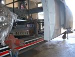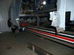Chassis on the frame machine at the onset of the perimeter frame install.