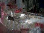 Mock up of grille surround to test fit hood for strut support clearance.