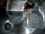 All "D" shafts were then drilled through for retaining bolts, finish welding on the support bearing and final boxing of the motor mount. I also had to fabricate a relocation plate for the oil filter housing clocking it out 90 degrees.