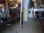 I used Tig wire to layout the steering linkages. I made a few attempts to get the least critical angles with the geometry and required clearances. I had the chassis welded to a fixture on wheels that I could bolt back to the frame machine. I had to place the chassis, motor/tranny with exhaust manifolds and the dash with the steering column on the frame machine a number of times to check geometry and clearance. I had to purchase a double "D" U-joint, "D" shafting and a "D" to the correct spline of the steering rack U-joint to fabricate the linkage. I also added a support bearing to the linkage to keep everything firmly in place. Next the sectioning of the front frame horns for the 118" wheelbase.