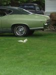 My next door neighbours lab keeps chasing them away, our properties are not fenced, but they keep coming back, they just stay off the ground.