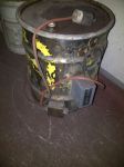 OK, here's the picture of my "hot tank". It's basically a steel drum, with a water tight lid. I got a heating element from an old water heater as well as a thermostat control. I drilled a hole on the side of the tank about 1" up from the bottom and welded a 1" NPT bung for the element to screw into. The coil that's seen in the picture is the capillary tubing for the temperature sensing bulb that get's fed into the tank about 2" from the top.