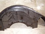 After cutting, I ground and tapered the area and will use a bit of house window screen and JB weld to repair with filler and primer to follow later.
