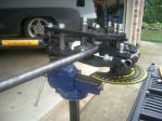 I had to give it a try before I hit the road. I am very impressed to say the least. Check out the 180 degree bend, flawless. The model 32 is great with the anti spring back pin, a nice feature. I was thinking of setting up with hydraulics but the hand ratchet bends effortlessly with this smaller diameter tube (if I go with big diameter tube I think an hydraulic conversion would be needed). The receiver vise works great and I can fold everything up and store it all out of the way. A couple of pic's, Rhys.