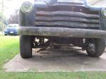 My 50 axeually has a AMC Pacer frt end under it , similar to pinto mustang 2 but heavier duty every thing . The Pacer has a curb weight of approx. 3500 lbs . unequal length upper an lower c arms , sway bar , power rack an pinion strg , an 10 .5 inch power disc brakes . and a bolt pattern that matches a ford passenger car 9 inch reaR END .