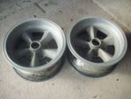 I have a pair of wheels in the inside they are marked Supermac1 Superior industries they are 15"-7" wide and 5 1/2 ford bolt pattern they are $125.00   email itza40@cogeco.ca Niagara Area