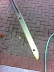 I soaked a trim piece in the solution per the instructions (a piece that has a pretty hefty dent on it and will need replaced if I can't smooth it out over time) and the next day I went back to the piece and pulled it out of the solution and holy crap, it was basically bare metal. I proceeded to lightly scrub the trim piece with steel wool and all of the remaining scaling came off. I sprayed it off with the hose and dried it off and OMG, it was bare metal, nothing was left that was rust.