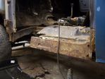 It has a 327, turbo 350, 3/4 ton axles and 38 x 14.5 inch super swamper tsl tires. I drove it for 1 summer. It was kind of scary. The steering and suspension were worn out. The more I looked at the truck the more things I found wrong. I thought it just needed cab corners and rockers, I was wrong. It turns out that when your floor starts to look bad lay snow and ice shield down on it (the stuff you roll under the first rows of shingles). When I took out the carpet that was screwed down and pulled out the snow and ice, parts of the floor came too. Awesome I said to myself and a lot more things were said in the garage that night.