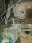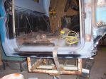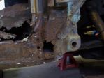 It has a 327, turbo 350, 3/4 ton axles and 38 x 14.5 inch super swamper tsl tires. I drove it for 1 summer. It was kind of scary. The steering and suspension were worn out. The more I looked at the truck the more things I found wrong. I thought it just needed cab corners and rockers, I was wrong. It turns out that when your floor starts to look bad lay snow and ice shield down on it (the stuff you roll under the first rows of shingles). When I took out the carpet that was screwed down and pulled out the snow and ice, parts of the floor came too. Awesome I said to myself and a lot more things were said in the garage that night.