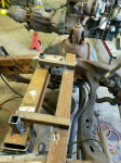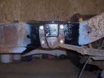 Now I have to cut the engine mounts off the frame and move them back 8". To get them straight I was thinking of cutting a square tube to bolt between the mounts. I think this should hold them in the right place when I weld them in. Does this sound like a good plan or is there a better way? Then I have to move that transmission cross member back. Looked like an easy job until I got under and really looked. The mount is tapered out from top to bottom about a 1/2 inch. The inside frame is stamped to match. Just some more work for me.
