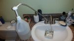 I now have a solution. I went to the local Swish Maintenance and bought a 1 gallon jug with a pump that will disperse the water into my reservoir without spilling the water all over trying to get it into the small hole in the reservoir. I then got a plastic hose that fits over the end of the pump just long enough to reach the reservoir when I place it in the bottom of the sink.