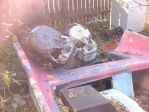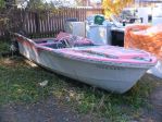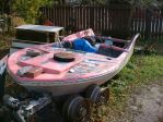 How about a big old pink(faded red) and white fiberglass late 50s 16ft boat with big fins and a couple of antique Johnston outboard motors. Yes Dan all this could be yours---If the price is right---. Ed