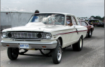 Just got thinking I might have a couple shots of a local friends Gasser 64 Fairlane(?) really a nice clean car 500 something cubic inches, not sure what trans right now as it seems he's been unhappy and changing that since he finished the car.. Been everything from a five speed to a C-6 and a couple choices between I am sure. One of the cleanest home builds I have ever seen... 1966 Econoline axle...