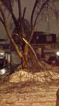 50' evergreen in my yard lost some branches, one on the roof of the house. No damage. Big tree behind my garage in the neighbours yard lost a couple of large branches, luckily not on my garage.