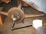 I had read some horror stories about removing the rear brake drums and the hubs. I was thinking about buing the OTC 7394 hub puller, but then went to the parts store and they loaned me a hub puller, not really heavy duty but what the heck, I can try it.