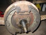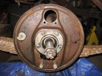 I removed the drive shaft and started to tear down the rear brakes. Everything was well lubed from the rear end oil so was quite easy to remove the brake parts. I really need to replace all rear end seals.