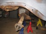 Managed to remove the rear end and the rear leaf springs from the car during the weekend. Sounds simple but it really was a lot of work because everything was so rusty and stuck.
