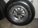 Complete set of four American 200S Daisy Spoke Mag Wheels, GM bolt pattern (5 on 4 3/4 bolt circle). All four wheels are 15"x9" with 4" back spacing, These wheels are getting hard to find and in very nice condition and have 4 new center caps. The tires are 22275/60/15 with 60% tread on them. $800.00.