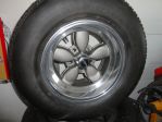 Complete set of four American 200S Daisy Spoke Mag Wheels, GM bolt pattern (5 on 4 3/4 bolt circle). All four wheels are 15"x9" with 4" back spacing, These wheels are getting hard to find and in very nice condition and have 4 new center caps. The tires are 22275/60/15 with 60% tread on them. $800.00.